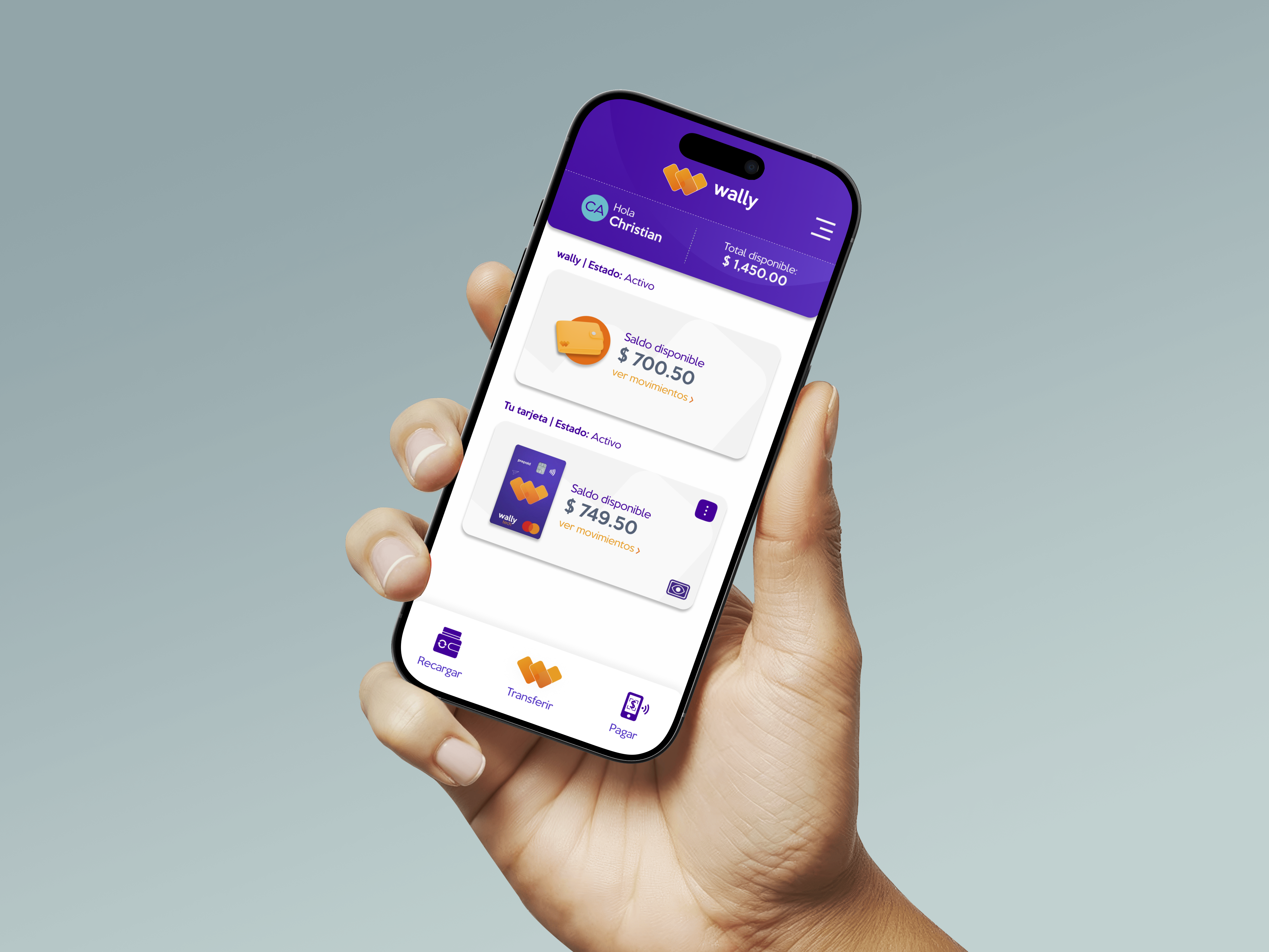 Puedes ver el saldo disponible en la pantalla principal de tu billetera. Podrás observar de manera separada el saldo disponible de la billetera, el saldo disponible de la tarjeta Mastercard® wally y el saldo total.