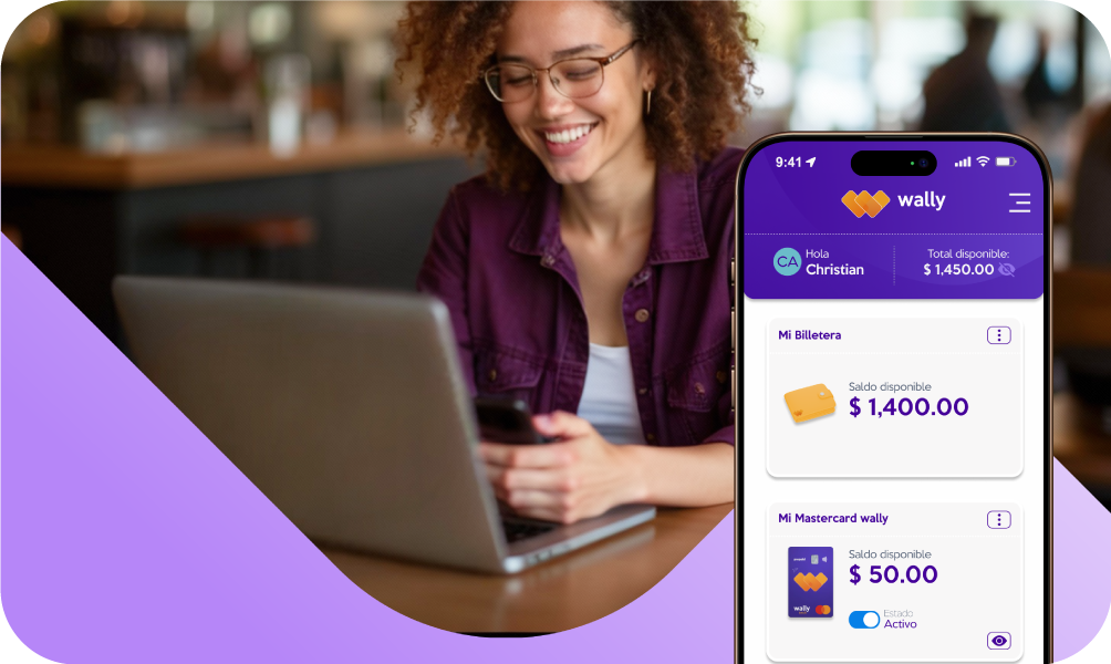 Es una aplicación móvil que te permite tener una billetera digital, con la cual podrás recargar dinero utilizando una tarjeta débito o crédito Mastercard® o Visa®, y enviar y recibir dinero en dólares a otros usuarios de wally de manera fácil, rápida y segura, y en Panamá, desde los 1,100 kioscos de Punto Pago. Además, tendrás la opción de obtener una tarjeta Mastercard® wally digital y una tarjeta física (Quiero Mi Tarjeta Física en el App), para realizar pagos o compras por Internet y en comercios físicos alrededor del mundo.